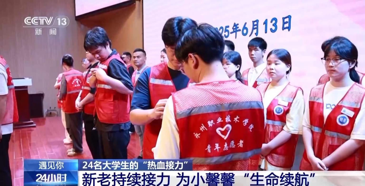 暑期开始了,“小馨馨帮帮团”的几名高年级学生要去外地长期实习。为了让团队保持稳定,唐新宇提前招募了一批新的学生志愿者。这天,他们在学校图书馆进行了交接仪式,团队继续保持24人的“满编”状态。